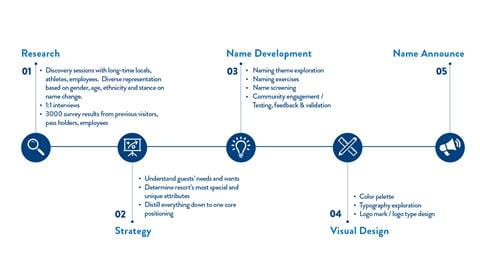 Then, an experienced branding agency took all that research, distilled out the most powerful and significant themes of this resort, and came up with a long list of potential names, some progressive and some more conventional. After multiple rounds of feedback, both internally and with the community working group, we whittled that list down to a few final options. We are in the final stages of confirming the name, which will be followed by the creation of our new logo. Following that, we will announce the name to the public, and begin work on changing over the resort to the new name and logo.